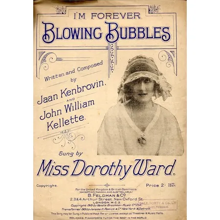 Kenbrovin, J. and Kellette, J.W. (1919) I’m forever blowing bubbles. Sung by Dorothy Ward. London: B. Feldman & Co. (Kendis, J., Brockman, J. and Vincent, N).